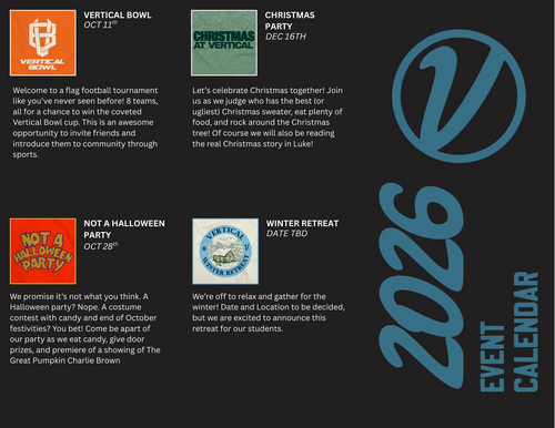 At Vertical Students, we are all about helping students take a step closer to Christ. We do that by being a place to make deep connections, grow in faith, and reach those who are from God.