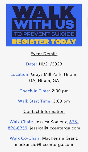 New Season is proud to have a team of “walkers” in this years “Out of the Darkness” walk! The team of walkers will be led by several of our NSC members. (Heather Casey, Kirby Davidson, & Hollie Winkles). We will also be raising money for the AFSP. The link to donate is below.